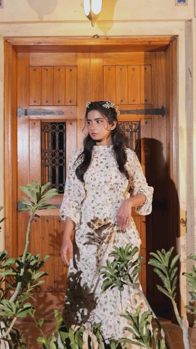 Grace, elegance, and timeless charm — The Elowen Grace Maxi is a love letter to regal femininity. Cut from premium Brochia and delicately lined for perfect drape, this full-length maxi is adorned with soft blush and sage florals, echoing a painter’s garden at dusk. The high neckline, gathered bodice, and poet sleeves lend a silhouette fit for a modern-day duchess.